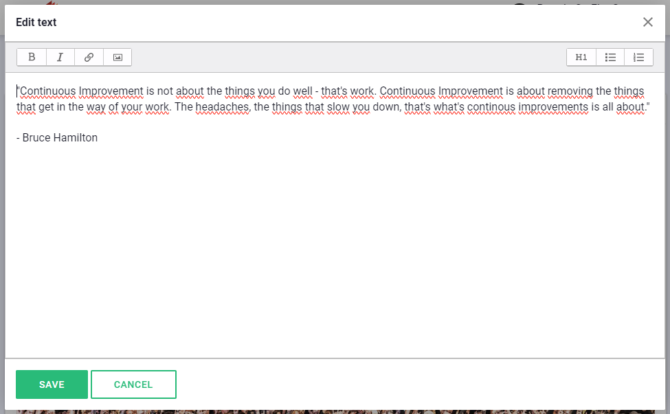 The editing mode opens in a separate window, making it very clear that you are working with the text and not just accidentally selecting text directly in the component. There is also a clear button to save the changes/additions you have made.