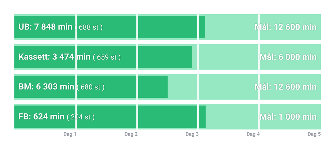 The production rate in relation to set weekly goals is updated in real time on large screens above the factory floor. In the warehouse, Boards on Fire visualizes the number of cubic meters picked for each employee, which has led to a big step forward in efficiency. Better control of the current situation has also made it possible to redistribute available staff in a smart way to where they are needed most at the moment.