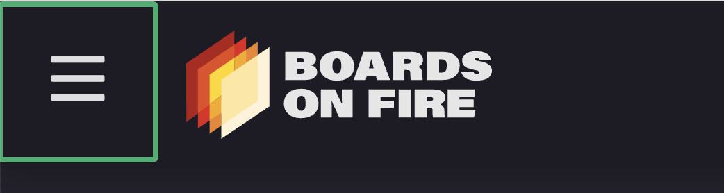 To create a data source in Boards on Fire, click on the three menu bars in the upper left corner.