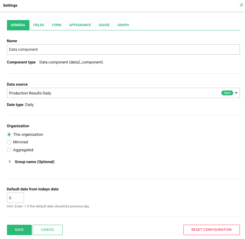 Example: If you enter -3 and today’s date is May 20th, the component will display data from May 17th instead.