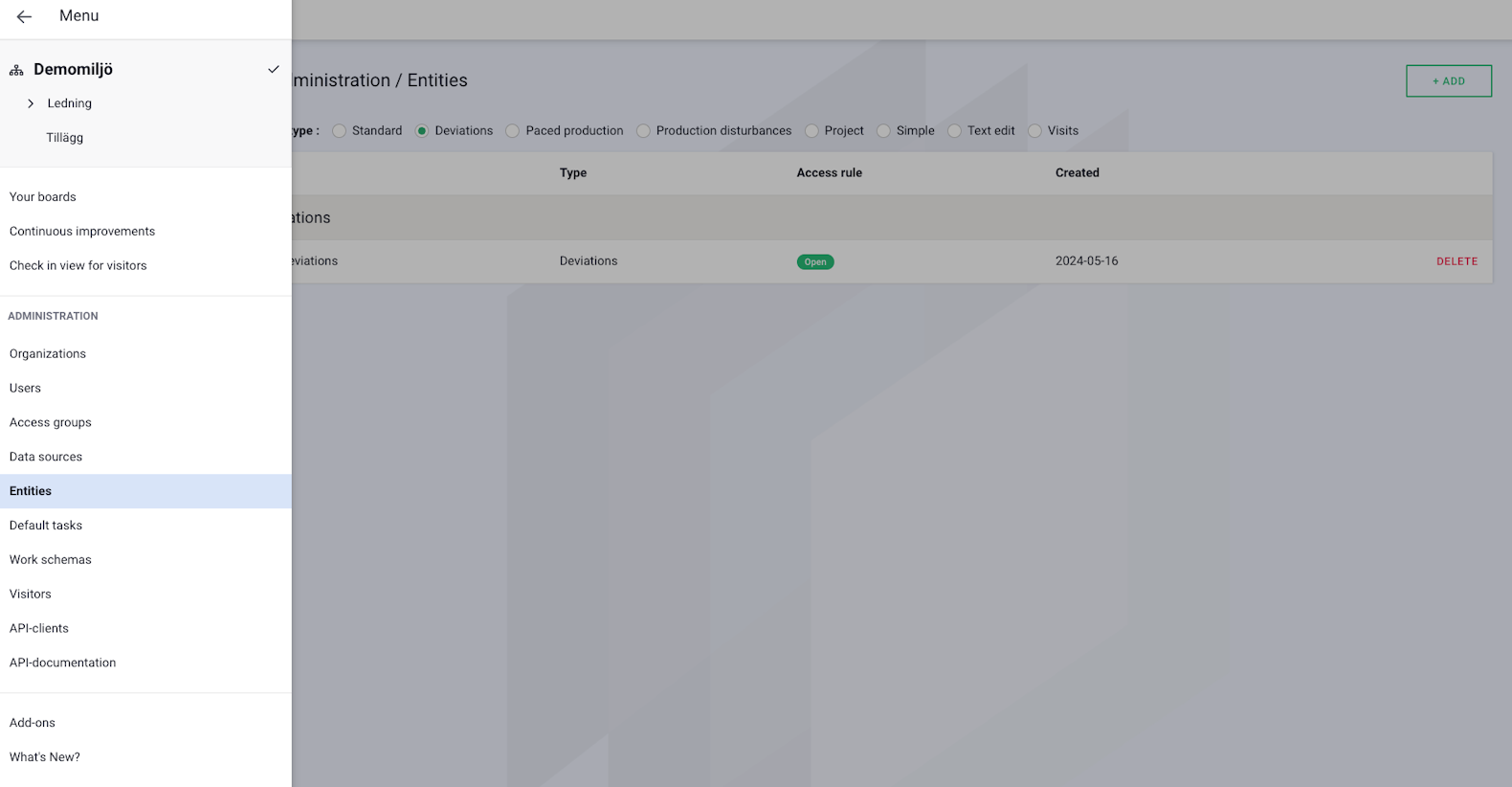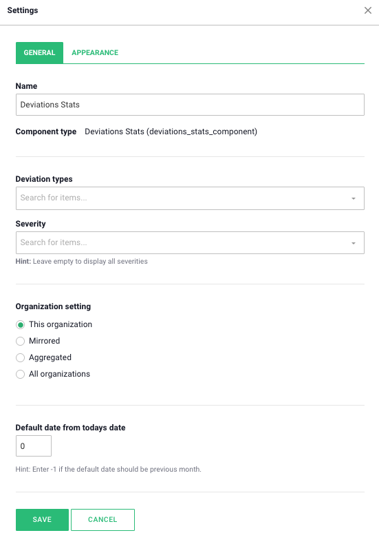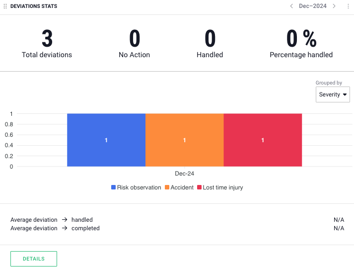 You can add a Deviation Statistics component by clicking the “Add” button in the top-right corner of an overview board and then selecting “Deviation Statistics” from the list.