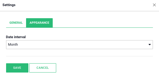 Under the “Appearance” tab, you can adjust the date range in the component.