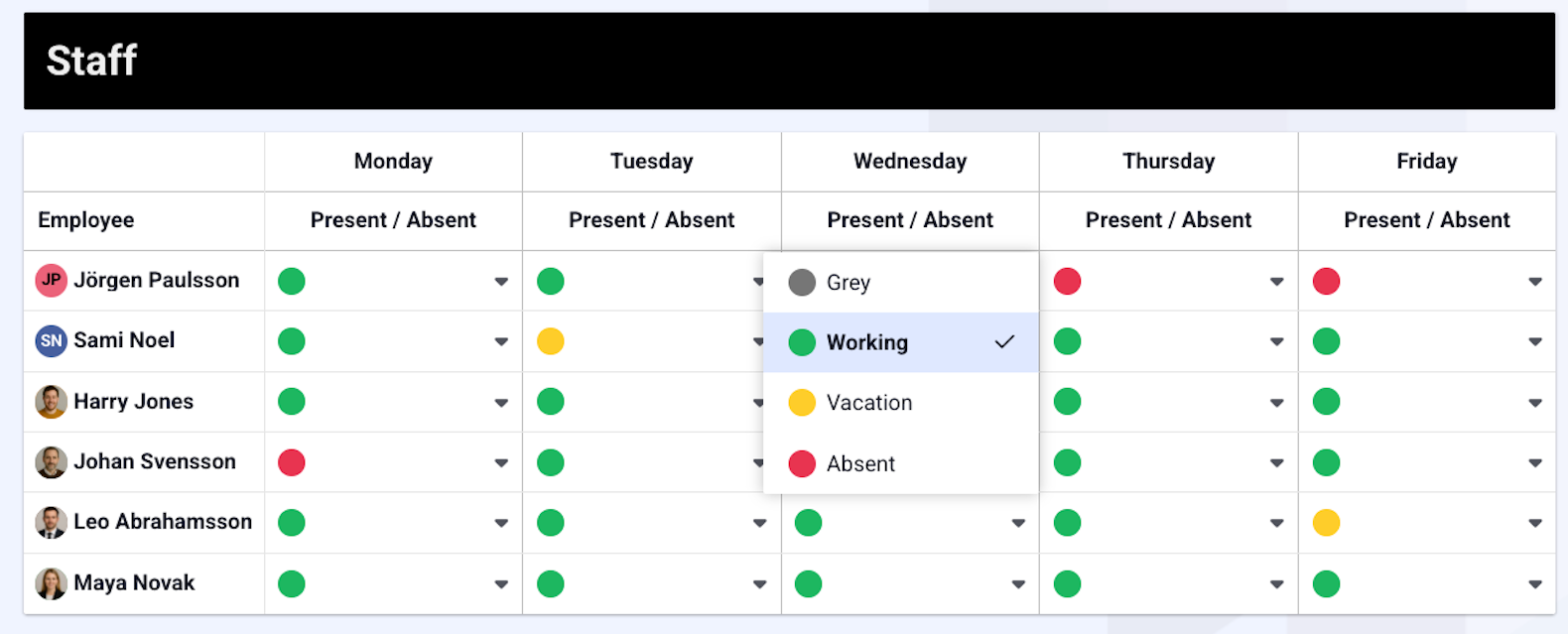 With Global Status, you gain full control over how status is displayed in your system, makin planning, execution, and follow-up easier. It also simplifies the process for employees to select the correct status when there are only three option available, with clear and easy-to-understand labels.