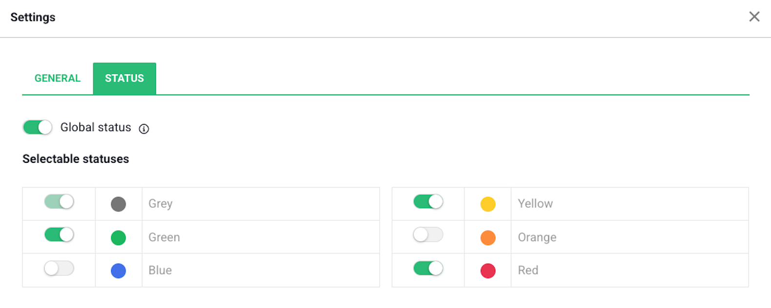 Before Global Status, the colors in the status field were fixed, and the label for each color was also predefined.