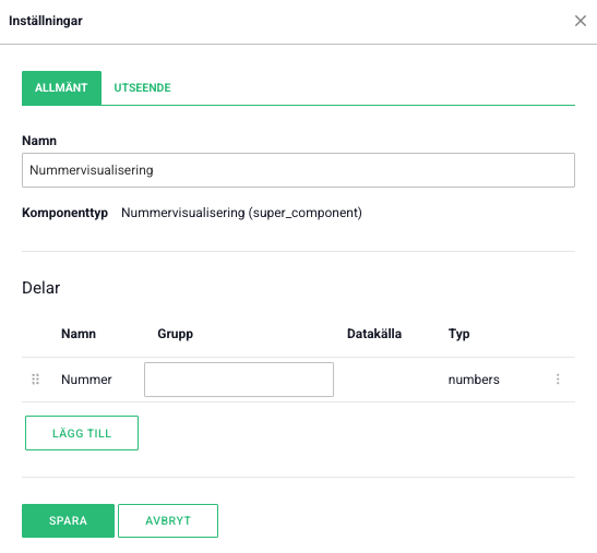 In the number visualization component, you can display multiple key figures simultaneously. The component’s settings are divided into two tabs.