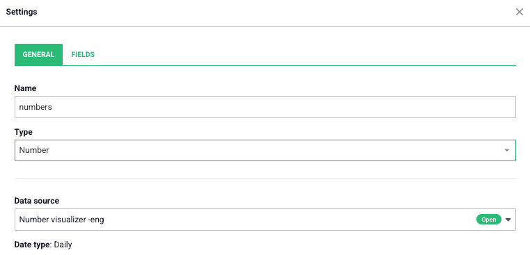 You will also see a new tab in the settings, “Fields”. Here, you can configure how the data will be visualized in the component. Information about the settings in the “Fields” tab can be found in the section on the data component and is also applicable here.
