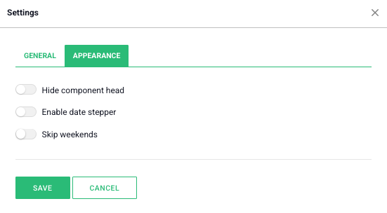 Hide component header: If you enable this option, the component’s name and date navigator will be hidden until a user hovers over the top area of the component with the cursor.