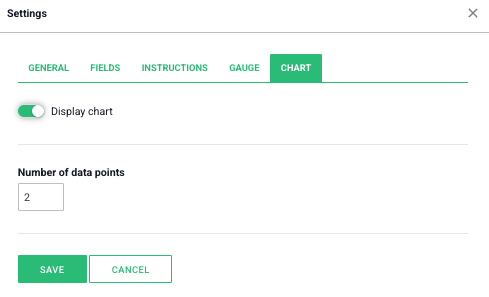 The final tab in the Recurring Checklist component is “Chart”. It is activated by selecting the option “Show chart”. In the setting for the number of data points, you can specify how many days should be included in the chart.