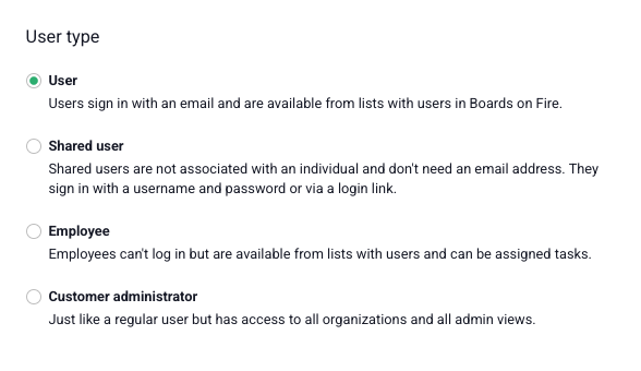 Choosing the right user type is not only about access - it is about giving each person the right conditions to contribute effectively. Clearly defined user types make working in Boards on Fire simpler, safer, and more aligned with how your organization operates.