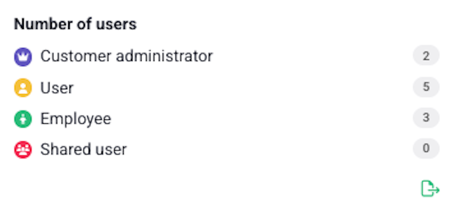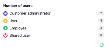 Customer administrators, or users with extended access for “Users”, can also export user lists from Boards on Fire containing all registered employees. In the system, you can view each user type and the number of users in each category. You can then choose to export a list of all users, or only those belonging to a specific user type, depending on your needs.