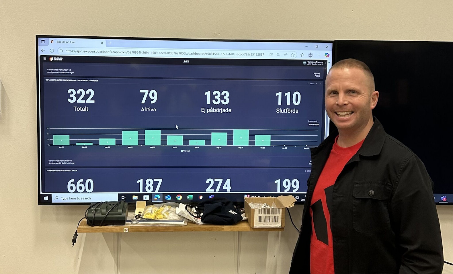 För ca. ett år sen startade produktionsorganisationens ledningsgrupp ett globlat arbete för att förbättra puls- och förbättringsstrukturen, stärka kommunikation och uppföljningsmöjligheter och samtidigt säkerställa att man kunde få en överblick över hela koncernen i ett och samma verktyg. I samband med detta fann man de lösningar som erbjuds av Boards on Fire och blev direkt intresserade.