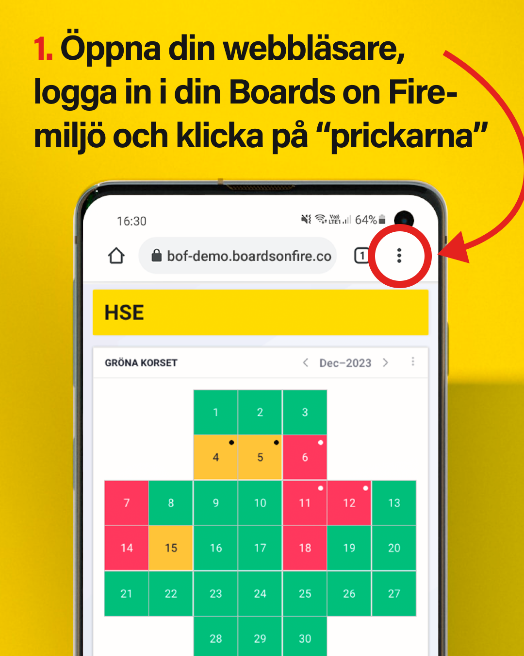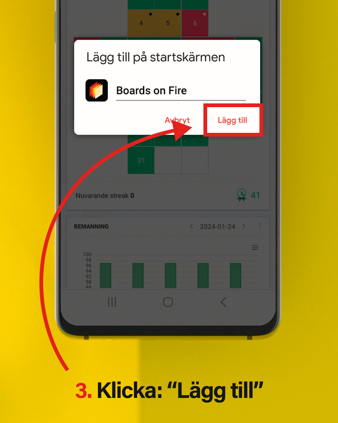 Du kan enkelt lägga till Board on Fire på som en app i din mobil. Följ stegen enligt bilderna nedan: