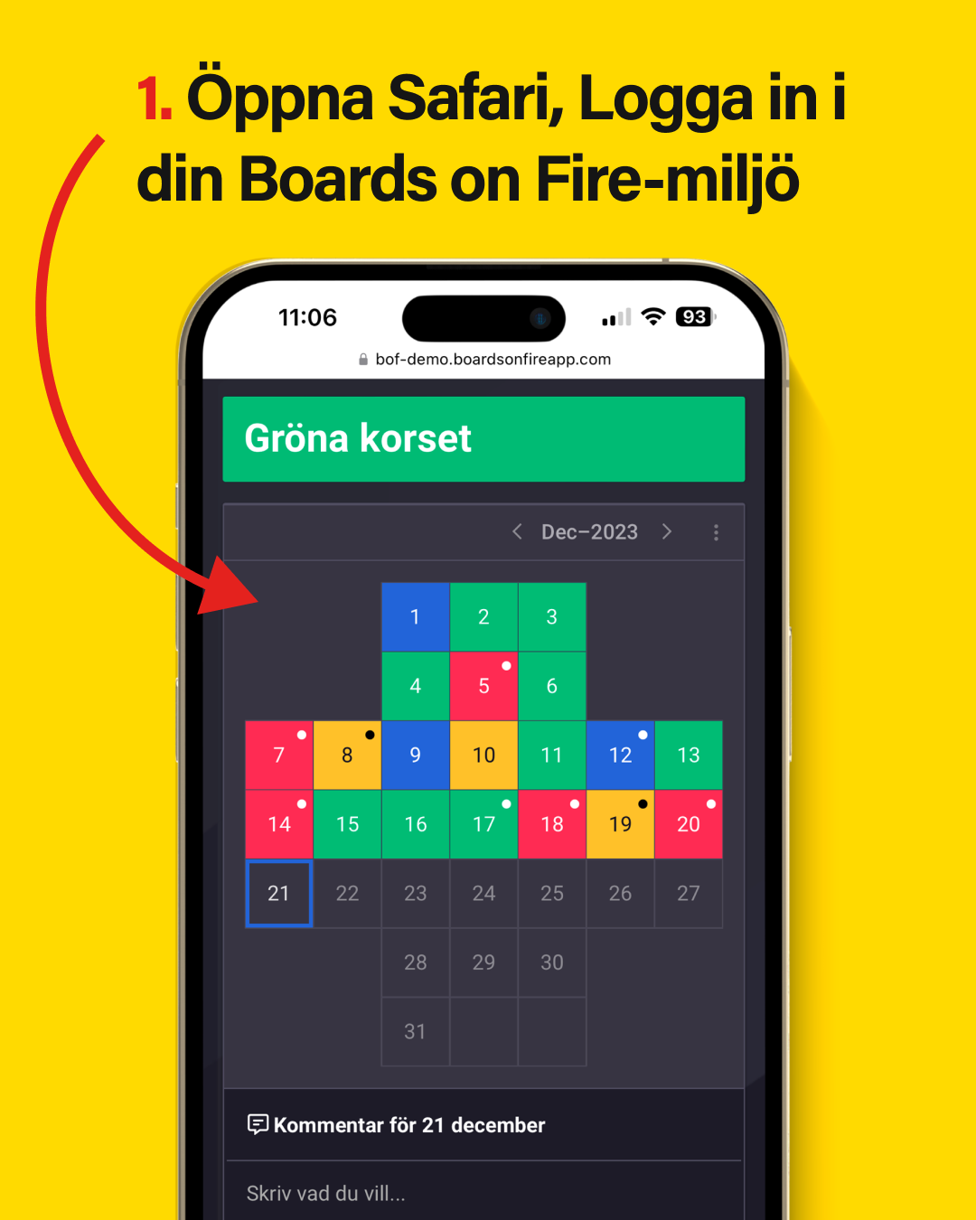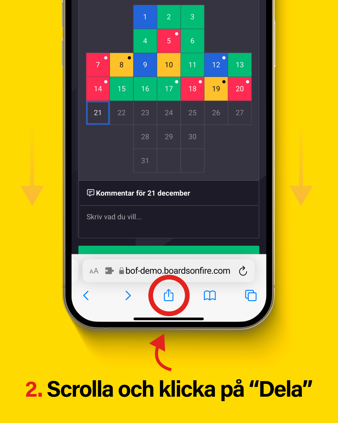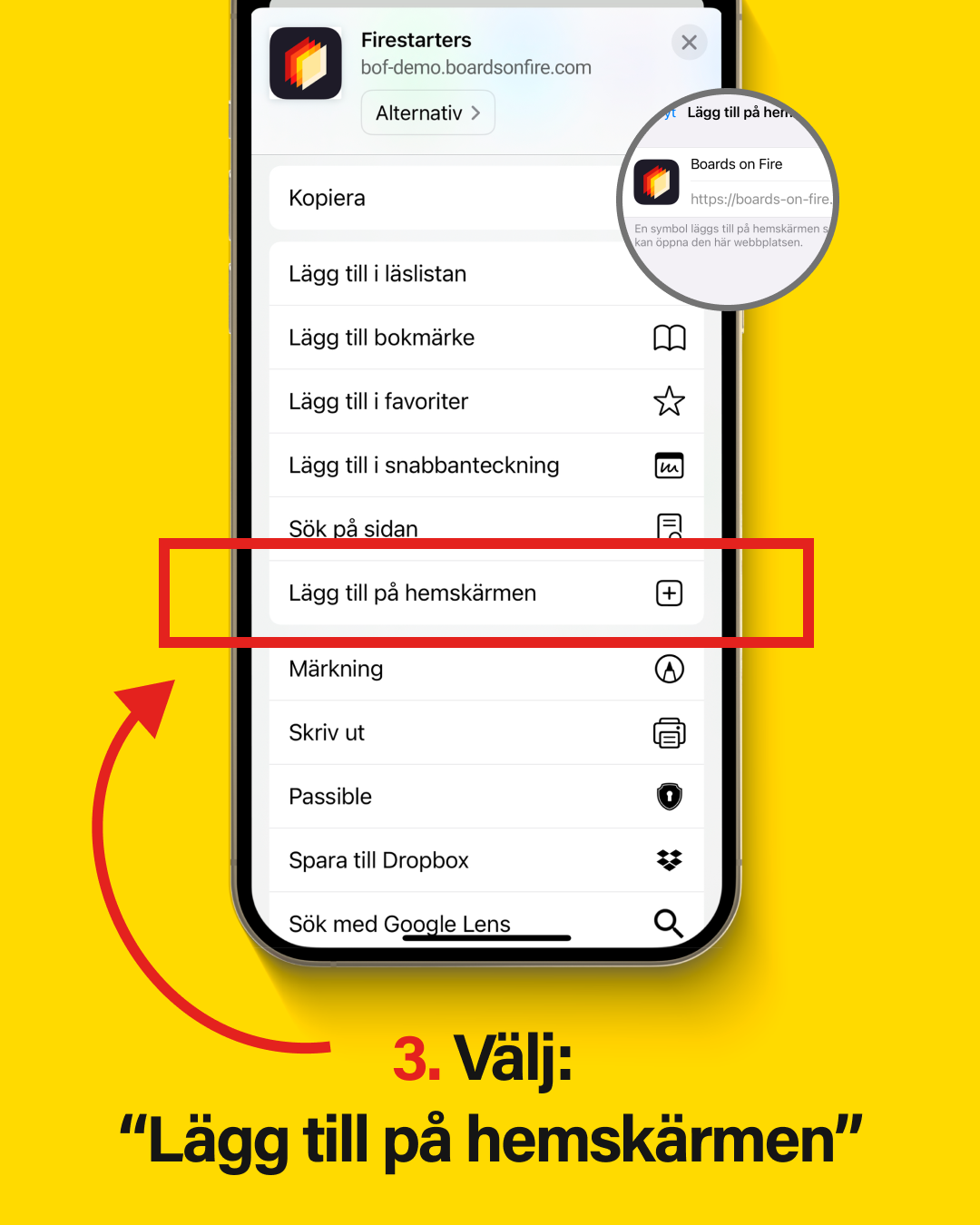 Du kan enkelt lägga till Board on Fire på som en app i din mobil. Följ stegen enligt bilderna nedan: