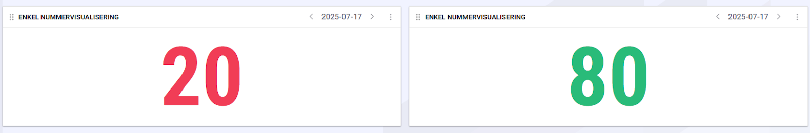 Komponenten “Enkel nummervisualisering” används för att tydligt visa nyckeltal, som exempelvis produktionssiffror eller andra mätbara värden. Den ger användare snabb tillgång till realtidsdata, vilket gör det enkelt att följa upp och fatta beslut. Den minimalistiska designen framhäver nyckeltalet utan onödiga detaljer eller distraktioner.