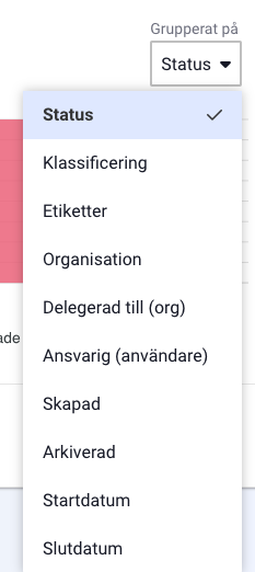 I förbättringsstatistik-komponenten kan ni välja att gruppera på olika typer av kategorier.