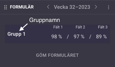 I fältet "Gruppnamn" kan du välja ett gruppnamn för komponenten. Ett gruppnamn är ett slags filter. Om två identiska komponenter finns i samma organisation kommer de att visa exakt samma data. Har någon eller båda komponenterna ett gruppnamn som är unikt för komponenten kan datan delas upp. Fälten i komponenterna kan då ha olika värden, trots att de tillhör samma datakälla. Om du vill aggregera/spegla data som har matats in i en komponent med gruppnamn, måste även komponenten du aggregerar/speglar till ha exakt samma gruppnamn.