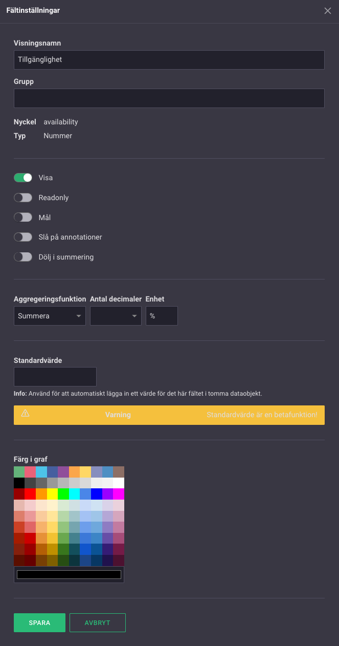 - I "Färg i graf" kan du välja vilken färg fältet ska ha i en graf.
