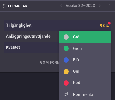 - Klickar du i "Slå på annotationer" och dubbelklickar på ett fält i ett formulär får du upp en meny där du kan sätta en färg samt kommentar på ett värde (se bild nedan).