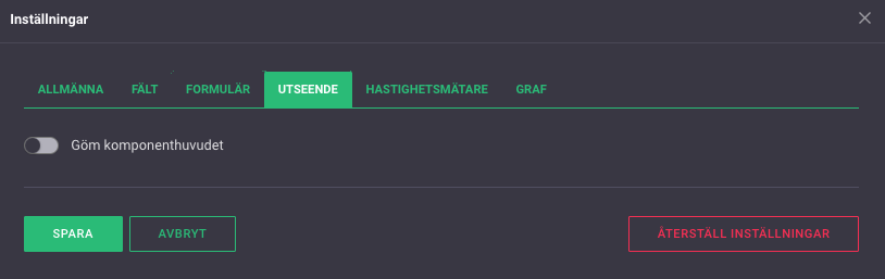 Här hittar du de "allmänna inställningarna" för komponenten.