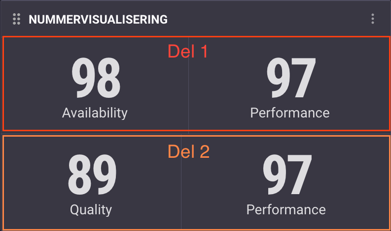 Nummervisualiseringen består av flera delar. En del motsvarar en rad i komponenten. Varje del kan vara kopplad till en egen datakälla.