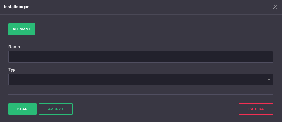 Här hittar du de "Allmänna inställningarna" för komponenten.