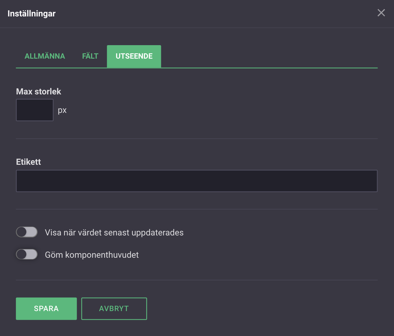 - I rutan "Max storlek" kan du välja hur stor siffran i komponenten ska vara.