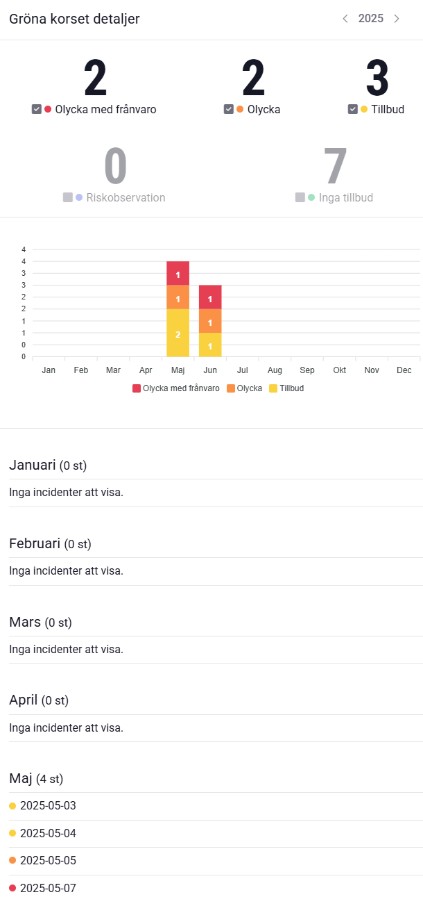 Ni kan även se en vy som presenterar vilka statusar som har registrerats varje dag månad för månad.