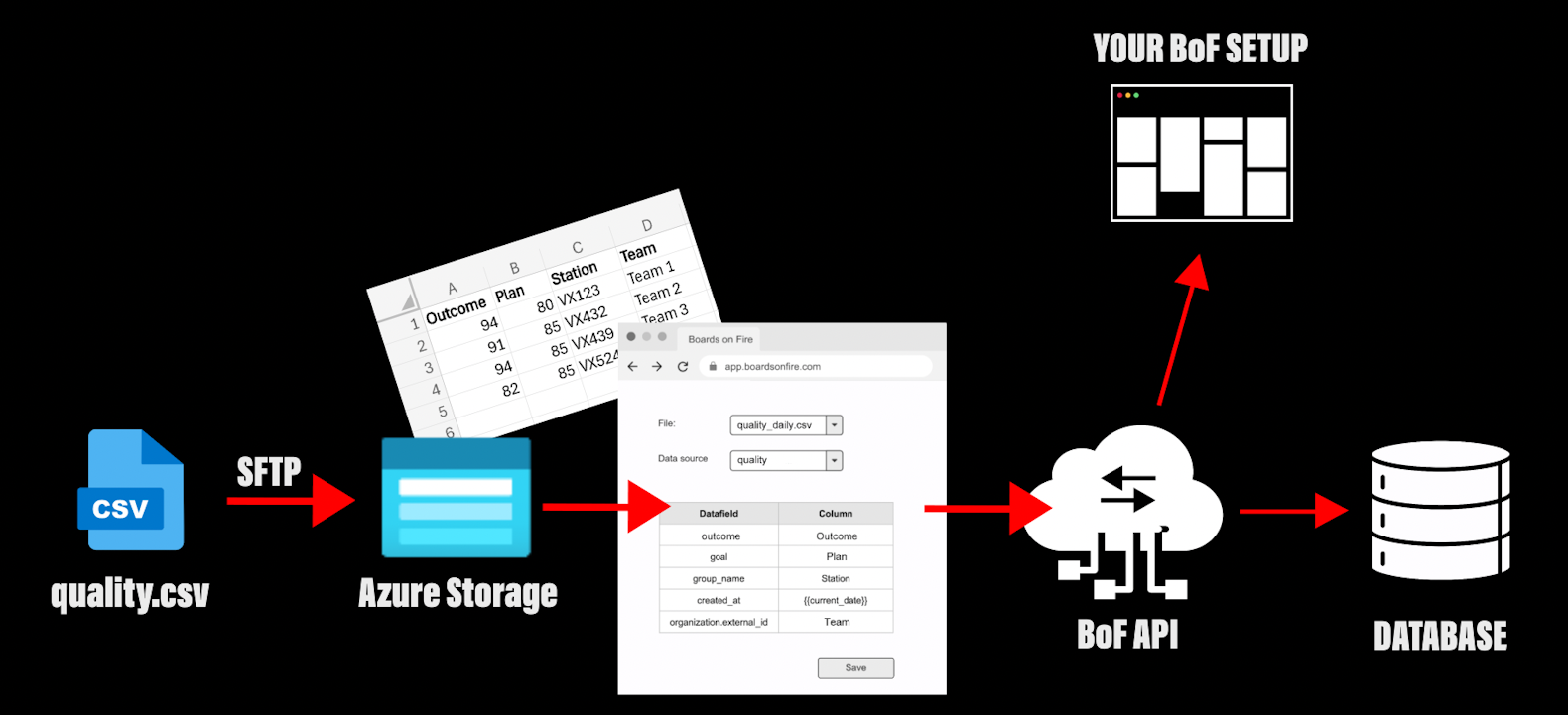 När csv-filen väl hamnar på SFTP-servern tar vår integrationsmotor över – mappar om datan och uppdaterar alla tavlor i Boards on Fire på precis samma sätt som med filintegrationen i det tidigare exemplet.