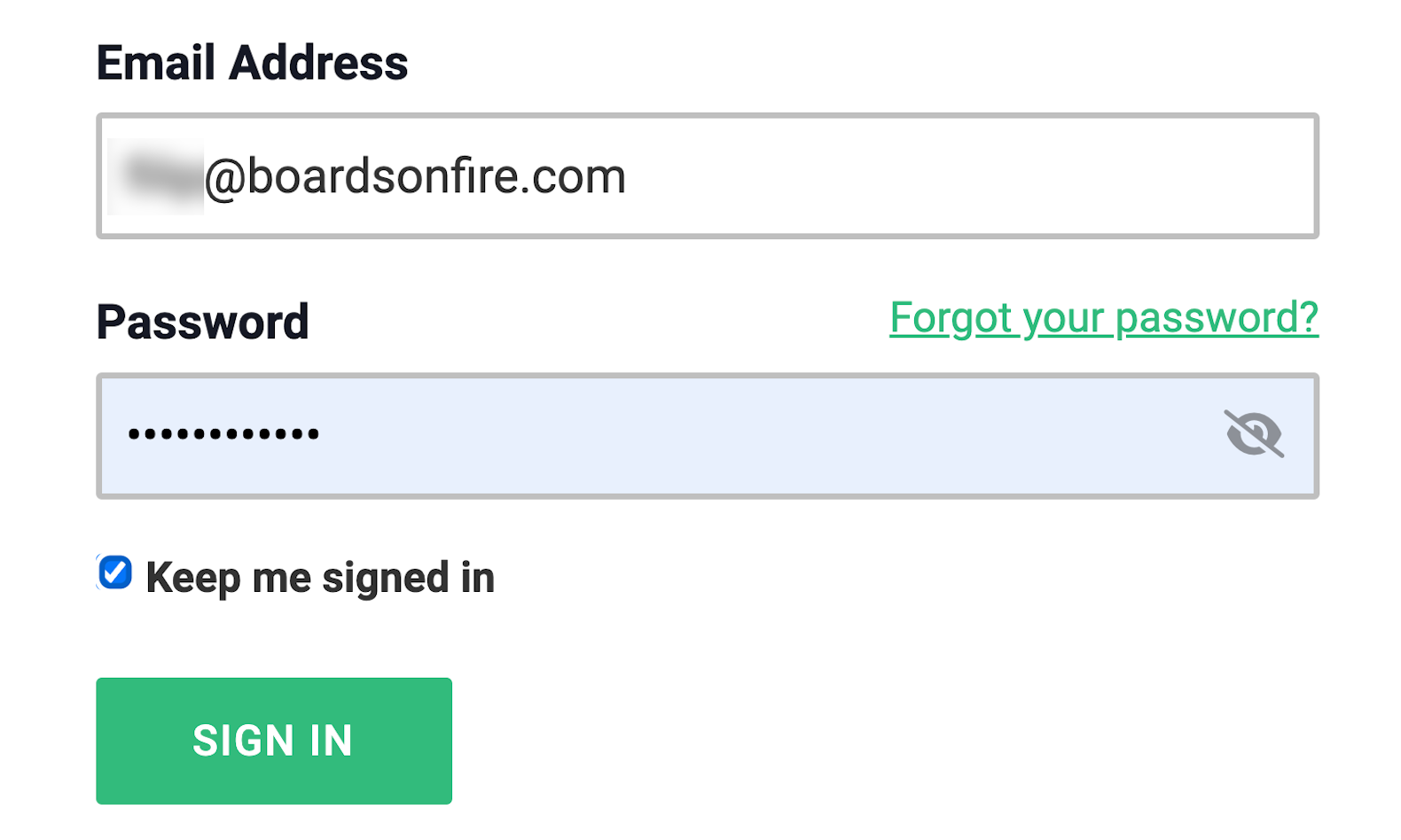 För att behålla din inloggning och inte automatiskt loggas ut efter 24h inaktivitet så finns det vid inloggningsrutan en ”keep me signed in” kryssruta som du kan kryssa i för att behålla din inloggning även efter 24h inaktivitet. Du kommer i princip vara inloggad förevigt, men det går att loggas ut av externa anledningar utanför Boards on Fires kontroll, såsom; rensade cookies och 30-dagars inaktivitet.