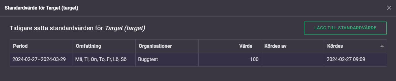 Här kan du se dina tidigare inskjutna värden i datakällan. Tryck på "lägg till standardvärde".